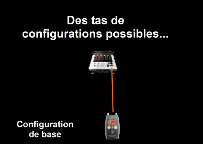 La configuration de base est composée d'une télécommande filaire et d'un satellite ayant 60 sorties. Avec 3 satellites, une seule télécommande peut piloter jusqu'à 180 sorties différentes. Possibilité de régler chaque satellite sur la soixantaine de travail désirée (pour qu'il réagisse par exemple : de 00 à 59, ou de 60 à 119, ou de 120 à 179), ou encore de composer sur les satellites vos propres soixantaines par adressage personnalisé des sorties (cette fonction de renumérotation est particulièrement intéressante si vous disposez de plusieurs satellites.