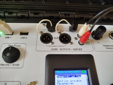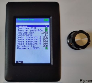 - Sorties stéréo audio : RCA, XLR symétriques, Jack 6.35 pour casque - Fonction manuelle coupure pyro et maintient du son - Chronomètres temps écoulé, temps restant - Dimensions : 330x295x150mm, poids 3.8Kg
