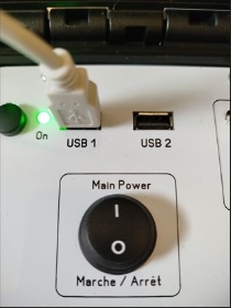 Comment ça marche ? D'abord vous créez votre projet pyromusical avec notre gratuiciel Oxydium PyroMusical Creator sur votre ordinateur, ensuite vous le copiez sur une clef USB, vous mettez cette clef dans le pyrocontrôleur musical et vous importez votre (ou vos) projet(s) dans sa mémoire interne, et vous pouvez enlever la clef USB. Ensuite, sur le terrain, vous branchez le pyrocontrôleur musical à la console Oxydium avec le cordon USB, et à votre amplificateur. Et c'est tout !